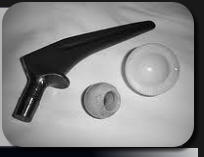 stainless steel metal femoral component (the ball attached to the femur) connected to an